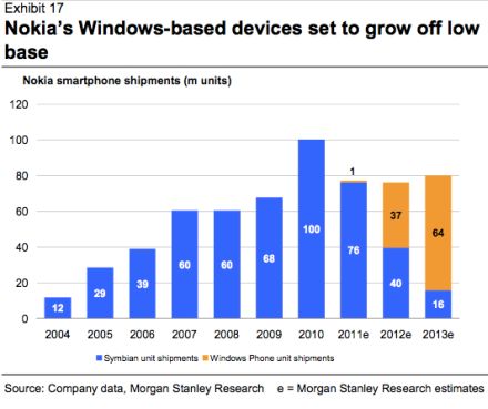 Jó éve lehet a finn gyártónak, ha bejön a számítása a Windows Phone rendszerrel kiadott készülékekkel kapcsolatban. A Morgan Stanley elemzőcég úgy gondolja, 2012-ben akár 37 millió WP telefont is eladhat a Nokia, ez a szám pedig akár 64 millióra is nőhet 2013-ban. Bár most még kissé optimistának tűnnek ezek a számok, de tény, hogy a Nokia magasra tette a mércét a Nokia Lumia 800, a Nokia Lumia 900 és a belépő szintű Nokia Lumia 710 telefonokkal, valamint ehhez igen komoly marketinget is csatolnak, nem is beszélve az agresszív árazásról a biztos siker reményében.