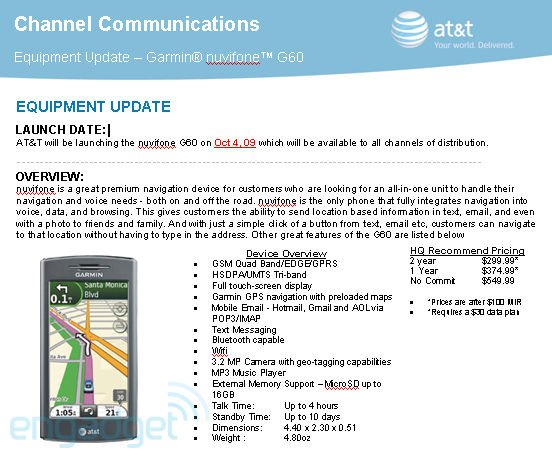 Október 4-tõl megvásárolható lesz végre, hosszú idõ után a Garmin-Asus G60 Nüvifone. A navigációval felszerelt telefon az amerikai AT&T szolgáltatónál debütál most vasárnap. Két év rablánccal 300+100 dollárba - mintegy 80 ezer forintba - kerül majd a 3.5 colos érintõkijelzõvel, 3.2 megapixeles kamerával, html böngészõvel, microSD bõvítéssel és HSDPA interneteléréssel felszerelt telefon.
