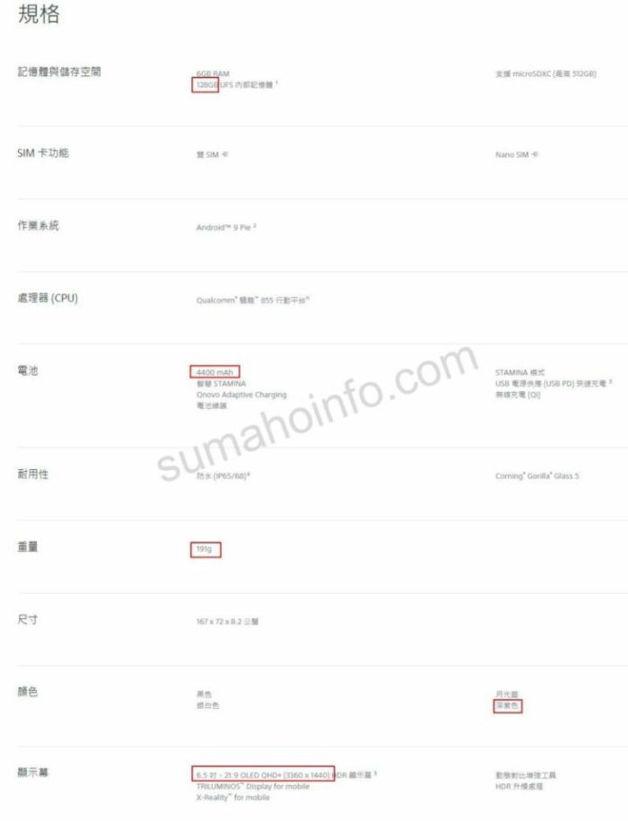 A processzor még ismeretlen, nagy valószínűséggel a Snapdragon 855-re vár a gyártó, ezért lesz későn kapható. RAM-ból 6, tárhelyből bővíthető, 128 gigabájt kerül az IP65/68 vízállóságot biztosító burkolat alá. A 4400 mAh-s akkumulátor nemcsak reálisnak tűnik végre – főleg a Sony Xperia XZ3 3300 mAh-s telepéhez képest –, de Qnovo Adaptive Charge töltéssel is gyorstölthető. Az okostelefon négy színben, fekete, kék, ezüst és sötétlila árnyalatokban lesz kapható. A fizikai méretei 162×72×8.2 mm, ehhez 191 grammot nyom a mérlegen.