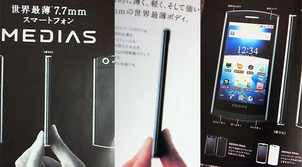 A japán NEC bemutatta a világ legvékonyabb Androidos telefonja címért jogosan induló telefonját, a NEC Medias N-04C-t. A japán NTT DoCoMo kínálatába kerül be az újdonság, amely szinte már vágni fogja az ujjunkat használat közben a maga 7.7 mm-es burkolatában. Várhatóan február 24-én mutatják be hivatalosan a készüléket, amely 4 colos érintőkijelzőt, 1seg TV tunert, Android 2.2 Froyo operációs rendszert és Sony FeliCa NFC érintésmentes fizetést is kínál. A mobil egyetlen szépséghibája, hogy várhatóan nem kerül még más formában sem egyelőre Japánon kívül értékesítésre.