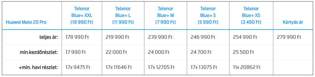 A Huawei Mate 20 Pro november 5-től lesz elérhető a Telenornál viharkék színben, az előrendelésre pedig november 4-ig regisztrálhatnak az érdeklődők online, az előrendelési oldalon. Az előrendelt készülékek november 5-től vehetők át a szolgáltatónál.