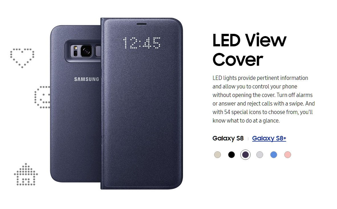 Sokak kedvence lehet a Galaxy S8 LED View Cover tok, amely nevéből is látszik, az előlapon LED-ek mutatják a főbb információkat elnagyolt ikonok – ebből ötvennégy darab van – formájában. Mi a Samsung Galaxy Note 4-nél is imádtuk.