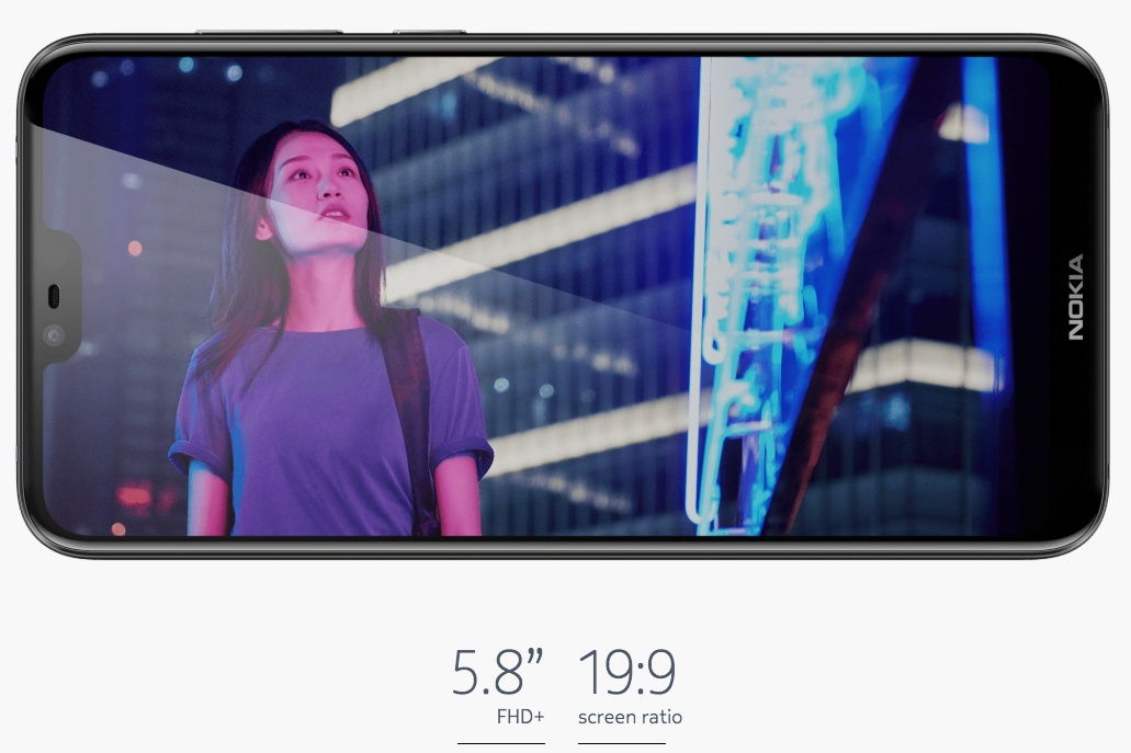 A Nokia 6.1 Plus közepes, 5.8 colos, 19:9 képarányú kijelzővel rendelkezik, ehhez full HD+ - 2280×1080 pixel – felbontás jár, ez klasszisokkal szebb képet biztosít a Nokia 5.1 Plus 720p-s megjelenítőjéhez képest. Az új okostelefonok elő- és hátlapját egyaránt 2.5D üveg borítja a mai trendeknek megfelelően, így sugallva a prémium kategóriát.