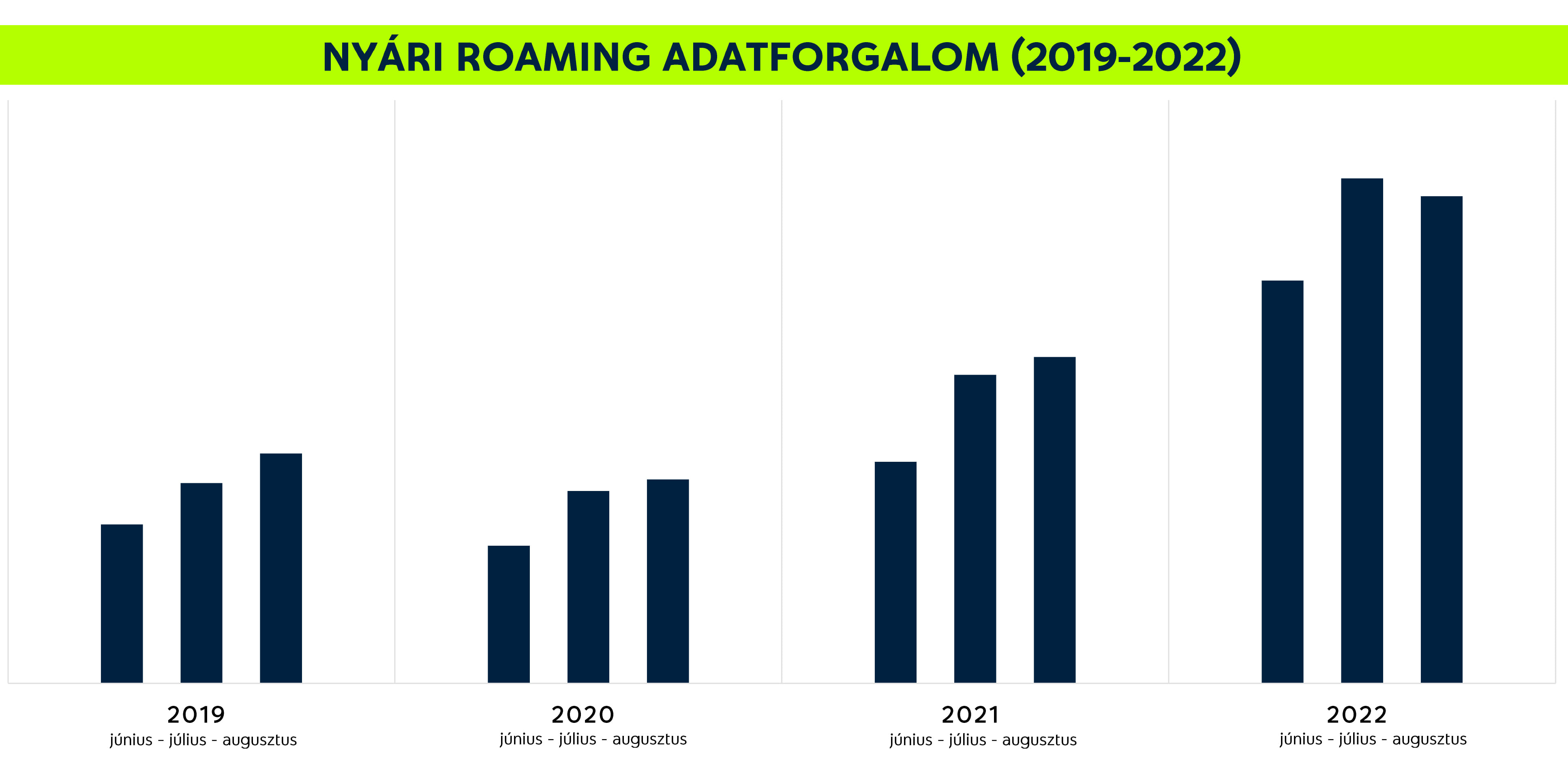 A roamingolás főszezonja nem meglepő módon a július-augusztus: az év folyamán ez a két hónap a legkiemelkedőbb a külföldön indított hívások és az adatforgalom terén is. Az utóbbi évekre visszatekintve látható, hogy a koronavírus-járvánnyal járó utazási korlátozások 2020-ben ugyan visszavetették a roamingforgalmat, de 2021-re rendeződött a helyzet, és tavaly július-augusztusban már kiugró – 2021-hez képest 56%-kal magasabb – adatforgalmat bonyolítottak külföldön a Yettel-ügyfelek.