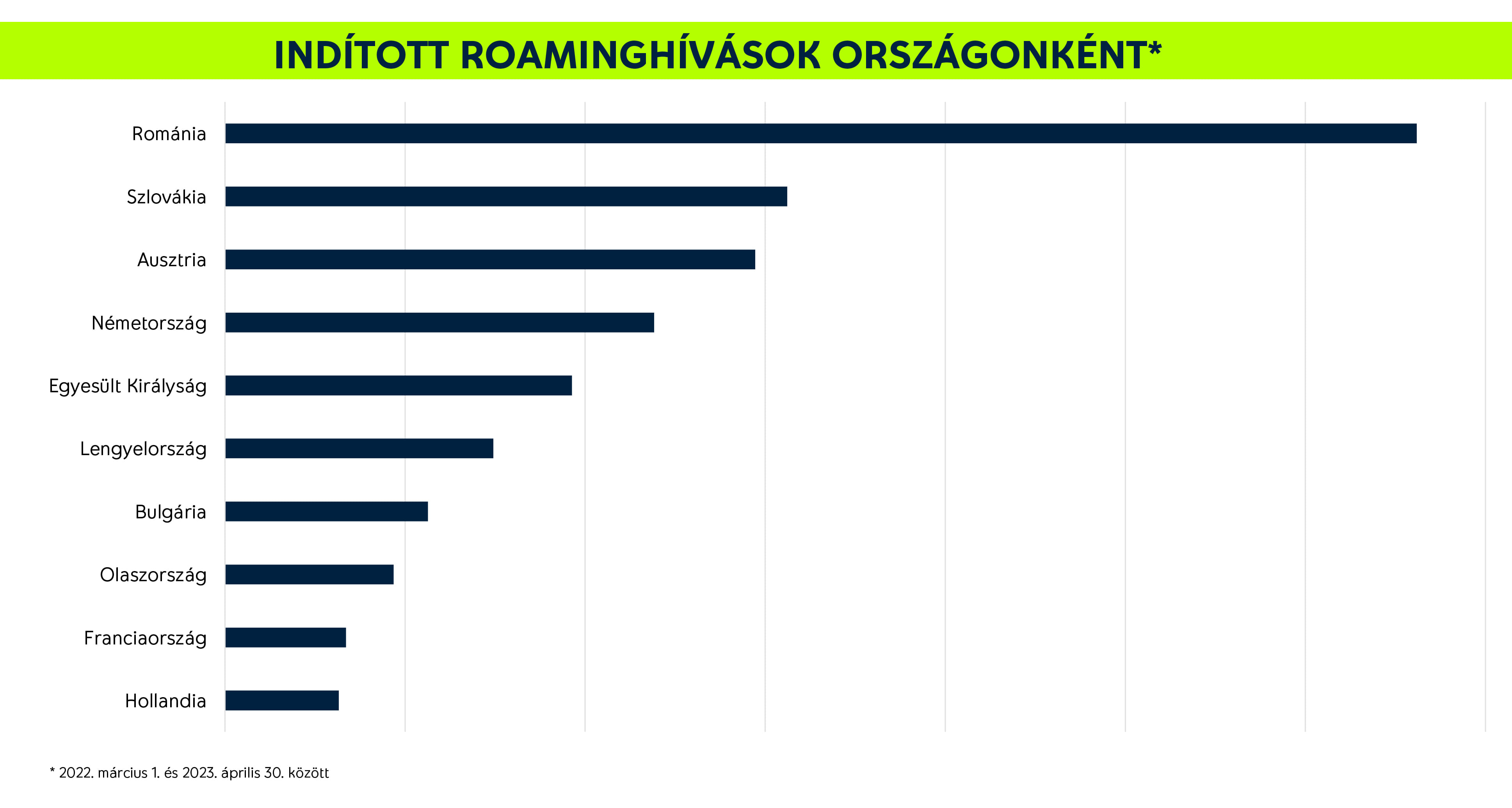 Az egyes országokat tekintve a legtöbb adatot Romániában forgalmazták a Yettelesek az elmúlt egy évben, ezt követi az Egyesült Királyság és Németország, és a top 3 adathasználó ország teszi ki a teljes roamingadat-használat 40%-át. Az indított roaminghívások esetében szintén Románia vezeti a listát: az összes hívás negyedét itt indították, ami mennyiségre majdnem duplája, időtartamban pedig háromszorosa volt a második helyezett Szlovákiának.
