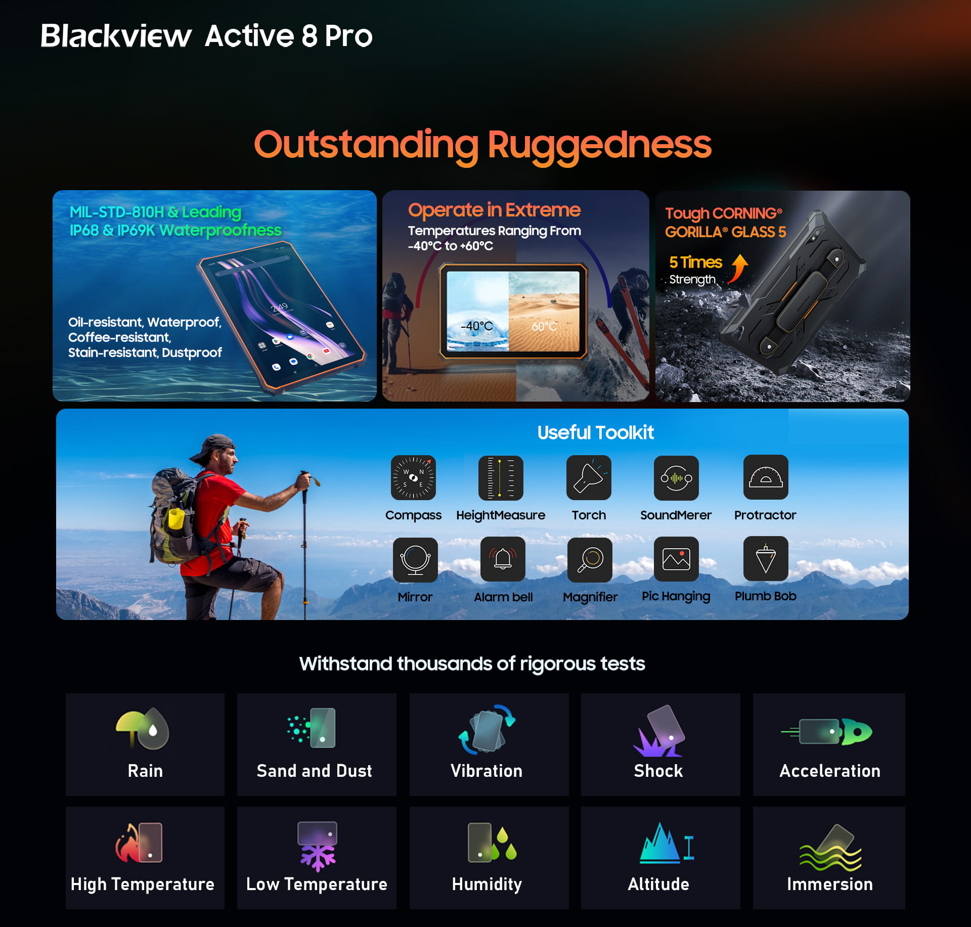 A megbízható megoldás érdekében a strapabíró telefonok iparágának úttörőjeként a Blackview 2023. július 10-én globálisan piacra dobja régóta várt első zászlóshajóját, az Active 8 Pro-t. Az Active 8 Pro strapabíró életstílust kínál a felhasználóknak a különféle élethelyzetekben, jelentős fejlesztésekkel a robusztusság, az üzemidő, a specifikációk és az adatvédelem terén, ami magasabb szintre emeli a termelékenységet.