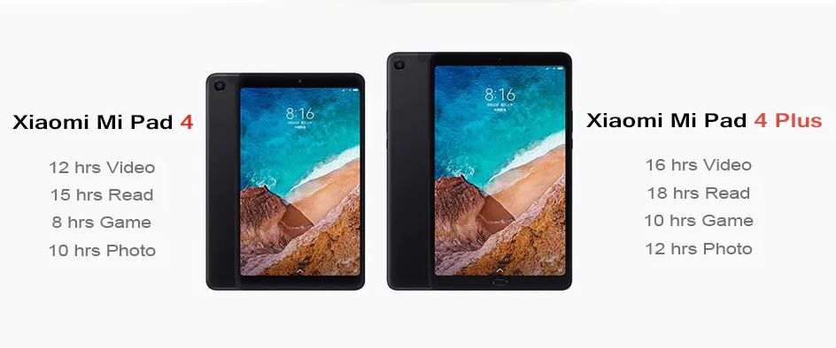 A teljesen fémházas Xiaomi Mi Pad 4 Plus méretes, 10.1 colos megjelenítője 1920×1200 pixel felbontású, ehhez 1000:1 kontrasztarány tartozik, valamint egy IPS panel. Az Android 8.1 Oreo rendszer alatt, a MIUI 9.0 működéséhez Snapdragon 660 processzor dolgozik kétszer négy maggal és Adreno 512-es grafikus gyorsítóval.