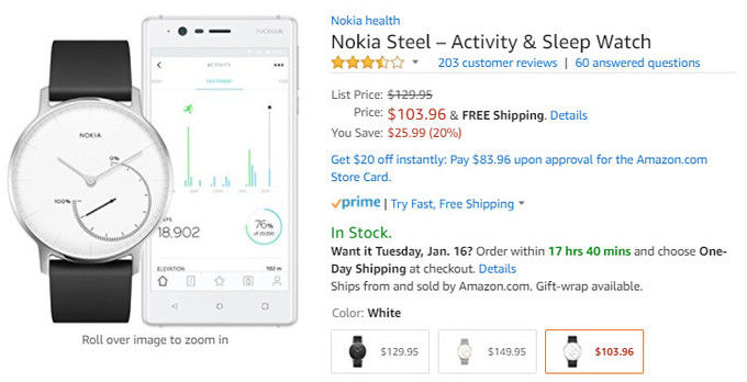 A Nokia Steel most húsz százalék kedvezménnyel érhető el az Amazon oldalán.