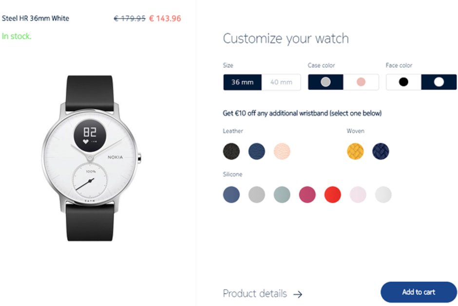 Miután a Withings visszavásárolta az Egészség üzletágat a Nokiától, akcióval pezsdíti fel az állóvizet. Számos, egészséggel kapcsolatos terméket most ötven százalékos akcióban ajánlanak, a Nokia Steel HR hibrid okosóra esetében húsz százalékot nyerhetünk. Így például egy eredeti áron 180 eurós hibrid óra most csak 144 euróba kerül, extraként kétféle koronaméret, kétféle színű tokozás és szintén két színű előlap közül választhatnak a vásárlók, ehhez mindössze 10 euró egy plusz szíj bőrből, szőtt anyagból vagy szilikonból.