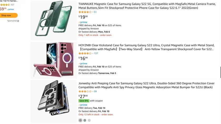Noname tokok az Amazonon az S22 szériához