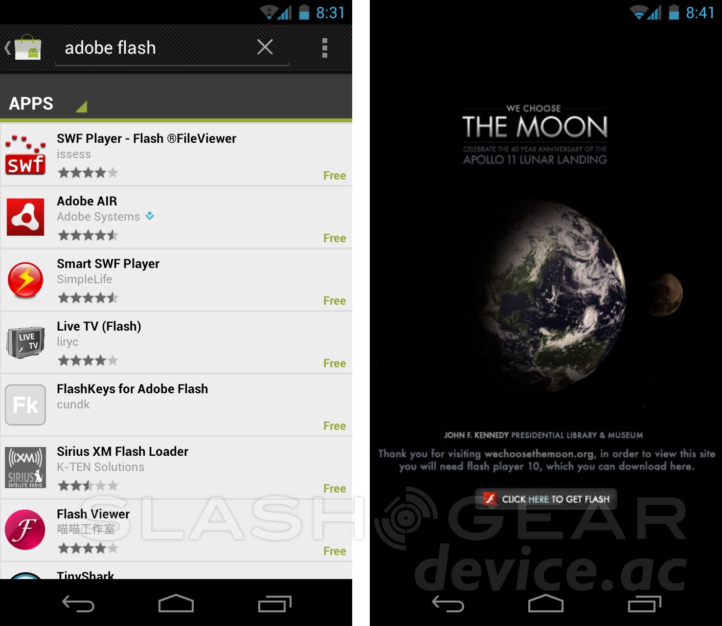 Az Android 4.0 Ice Cream Sandwich rendszer nem támogatja a mobil Flash-t és a késõbbiekben is csak akkor lesz elérhetõ, ha az Adobe meggondolja magát és kiad legalább egy verziót az ICS-re. A Google hivatalosan is megerõsítette az eddig is sejtett információt, mely szerint az ICS jelenleg egyáltalán nem támogatja a Flasht megjelenésekor, ráadásul a régebbi változatokat sem lehet telepíteni - legalábbis egyelõre. Ezt bizonyítja az is, hogy a Galaxy Nexus-ra még az Android Marketbõl sem lehet Adobe Flash-t telepíteni, hiszen nincs rá optimalizált változat. A rossz hír alapjául az Adobe múlt heti bejelentése szolgált, eszerint ugyanis nem támogatják tovább a mobil rendszereket.