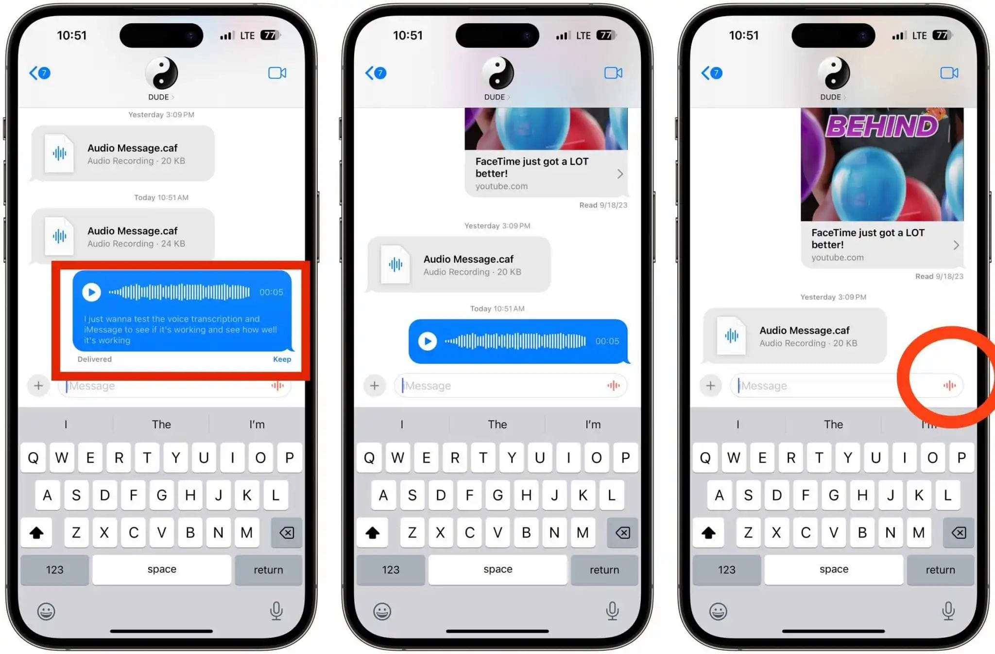 Egy másik rendkívül hasznos kiegészítés volt a hangátírás az iMessage-ben. Ami nagyszerű ebben a frissítésben, az az, hogy automatikus; semmit sem kell megváltoztatni, bekapcsolni vagy módosítani. Csak küldjön egy normál hangüzenetet az iMessage-ben, és kevesebb mint öt másodpercen belül a leírás közvetlenül a hangüzenet alatt jelenik meg. Így tehát elolvashatóvá teszi a hangüzenetet. Nagyon hasznos!