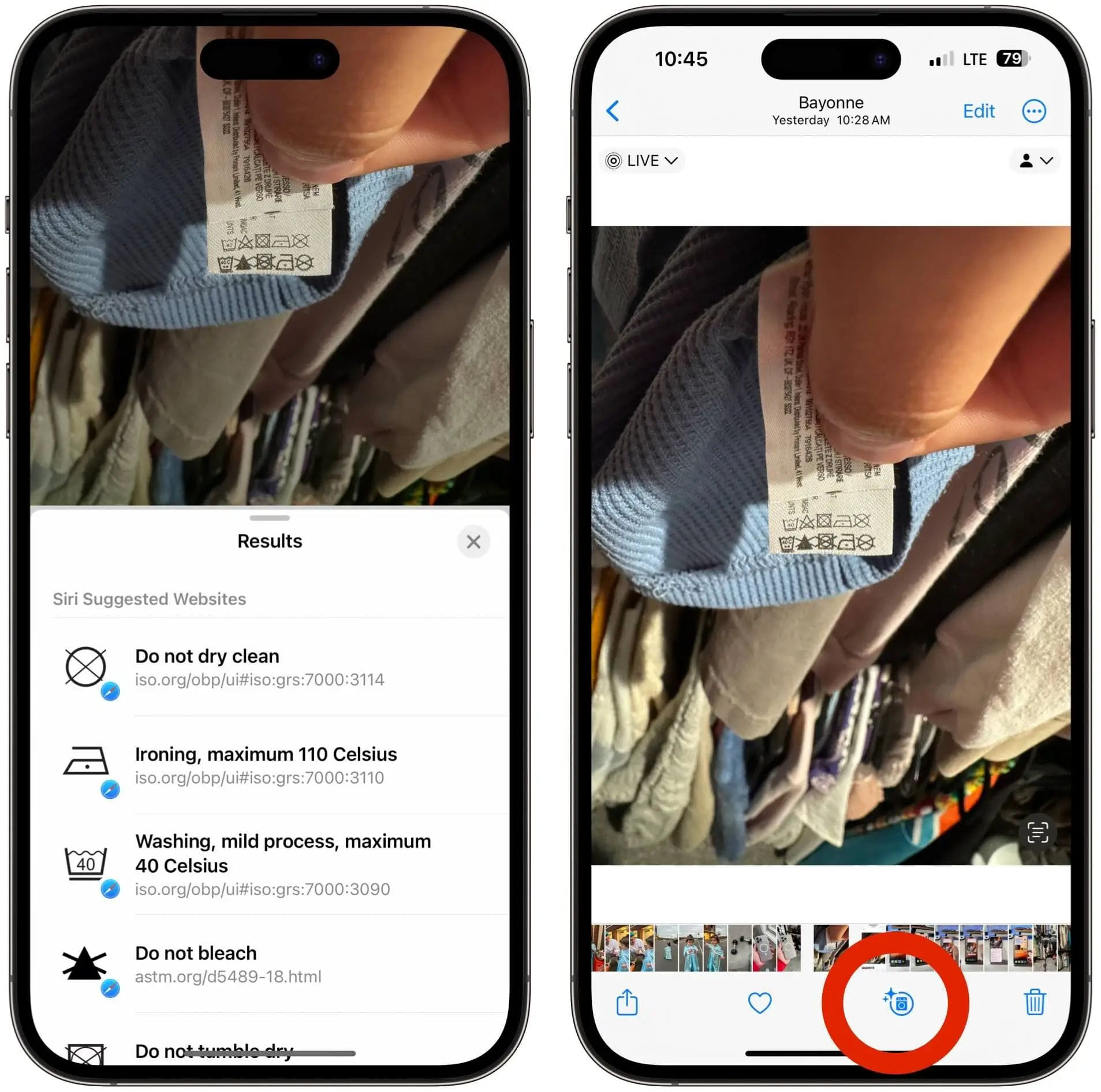 Előfordult már, hogy tönkretett egy ruhadarabot, vagy ami még rosszabb, a partnere ruháját, mert hideg helyett meleg vizet használt a mosás során? Vagy talán azért zsugorította össze kedvenc ingét, mert nem kellett volna a szárítóba tennie? Most azonban az iOS 17-tel lefényképezheti ruházati címkéjét, és iPhone-ja pontosan megmondja, mit jelentenek ezek a mosodai szimbólumok.