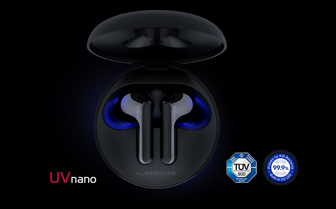 A magasabb kategóriát képviselő HBS-FN6 az LG egyedi, UVnano töltőtokjával érkezik, amely biztonságos tárolást, problémamentes töltést és fokozott higiéniát kínál. Beépített ultraibolya fény alkalmazásával az LG vékony töltőtokja elpusztítja a kóli és sztafilokokkusz baktériumok 99,9 százalékát a hipoallergén szilikon füldugóról és annak belső felületeiről.