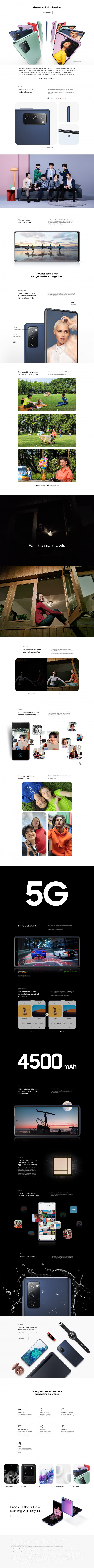 A Galaxy S20 Fan Edition várhatóan hivatalosan is bemutatásra kerül a Samsung „Galaxy Unpacked for Every Fan” rendezvényén szeptember 23-án. A telefon dizájnja, színváltozatai és specifikációi azonban a múltban különféle szivárgások révén derültek ki. Most kiszivárgott a Samsung teljes weboldala a Galaxy S20 FE 5G-hez.