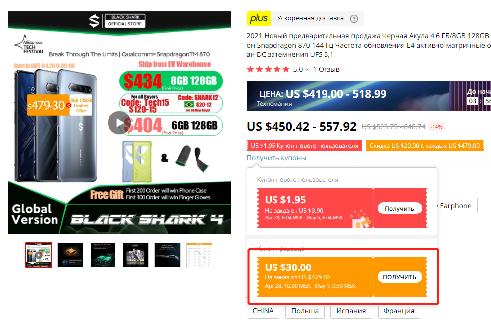 - 8+128G: $449 kuponnal
