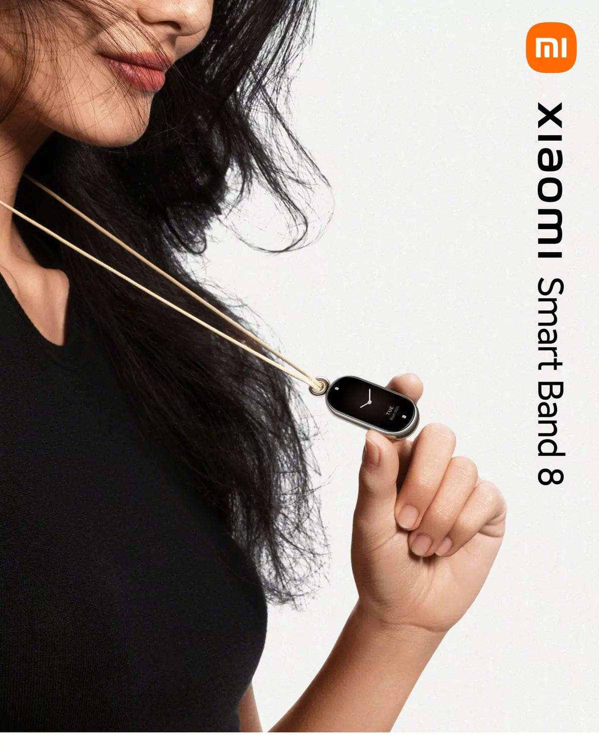 A Xiaomi Smart Band 8 karcsúbb szíja új felhasználási lehetőségeket kínál, például medálként vagy a cipőn viselve is hordható.
