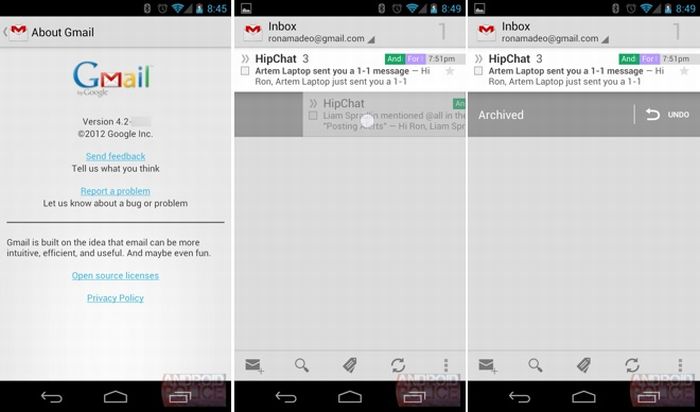 Nemcsak a Google Play frissül hamarosan, hanem a Google Mail is, legalábbis androidos mobilokra biztosan elérhető lesz két apró újdonság a kliensen belül. Az egyik új funkció a kétujjas nagyítás a teljes programon belül, mintha böngészőből néznénk a levelezésünket, így képekre és szövegre egyaránt teljes körűen nagyíthatunk. A másik újítás pedig nem más, mint az egyetlen húzással törölhető vagy archiválható levelek, így a törlés egyetlen mozdulattal elintézhető a több kattintás helyett. Sajnos egyelőre nem tudunk letöltési linket adni a Gmail 4.2 verziószámához, de amint elérhető lesz, közöljük!