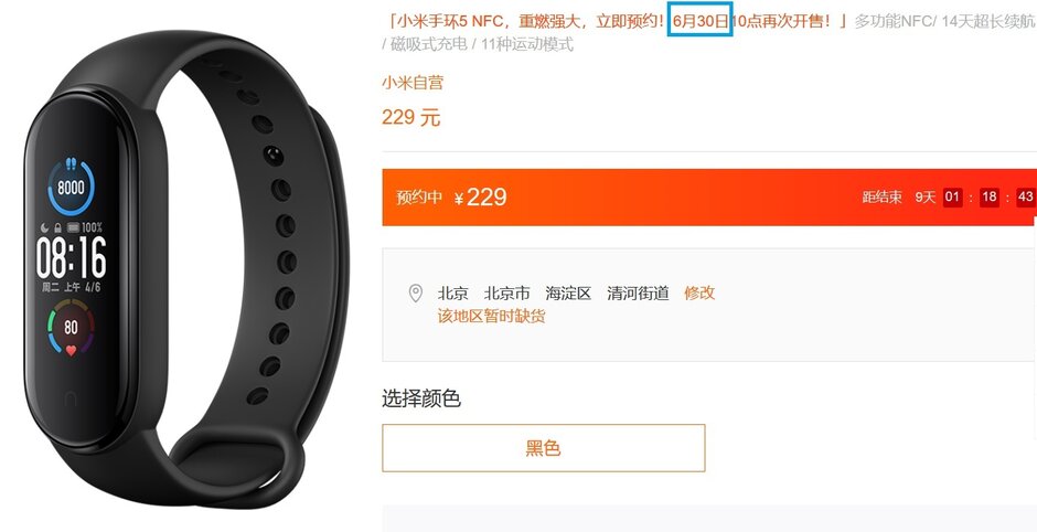 A Xiaomi Mi Band 5 fitness tracker múlt csütörtökön mutatkozott be és már átmenetileg el is fogyott. A hivatalos Xiaomi online áruház szerint az NFC-s és a nem NFC-s Mi Band 5 modellek június 30-án lesznek ismét raktáron. A Xiaomi népszerű készülékének legújabb verziója 32,38 dollárt ér NFC-s verzióban és 27 dollárt NFC nélkül. A Mi Band 5 nemzetközi változata nagy eséllyel a jövő hónapban debütál, mint Mi Smart Band 5, mind NFC, mind nem NFC változatokkal.