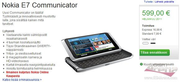 Egy jó és egy rossz hírünk van azok számára, akik mielőbb Nokia E7-00 tulajdonosok szeretnének lenni. Az első információk szerint már december óta kapható lehetne az E7, ám különböző hibákra hivatkozva még mindig nem dobta piacra a finn gyártó a készüléket. Jó hír, hogy mától előrendelhető a telefon Finnországban, rossz viszont, hogy februárig nem kezdik meg a kiszállításokat, csak az előrendeléseket rögzítik. Jelenleg a fehér és a fekete színű burkolattal ellátott modellek is rendelhetők, 600 eurós áron.