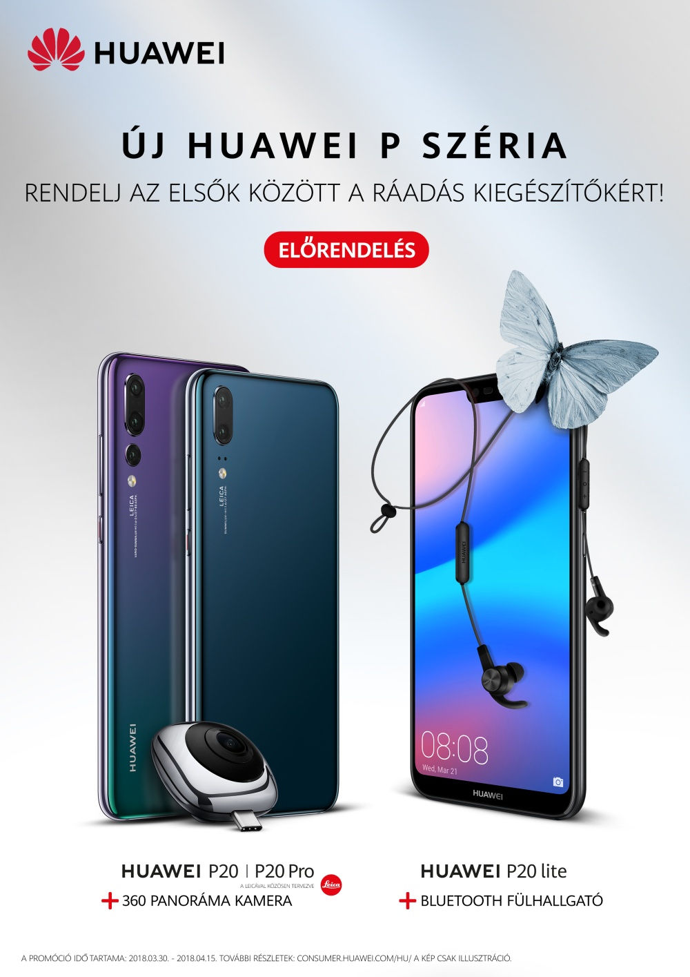 Április 15-ig a Huawei P20 és a P20 Pro készülékekhez 360 panoráma kamera, míg a Huawei P20 lite-hoz sport Bluetooth fülhallgató jár.