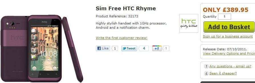 A középkategóriás HTC Rhyme 1 gigahertzes processzort, öt megapixeles kamerát, 720p videórögzítést, 3.7 colos, 480×800 képpont felbontású érintőkijelzőt, 4 gigabájt beépített háttértárat, Sense 3.5 kezelőfelületet, valamint a gyári csomagban számos extra kiegészítőt tud felmutatni.