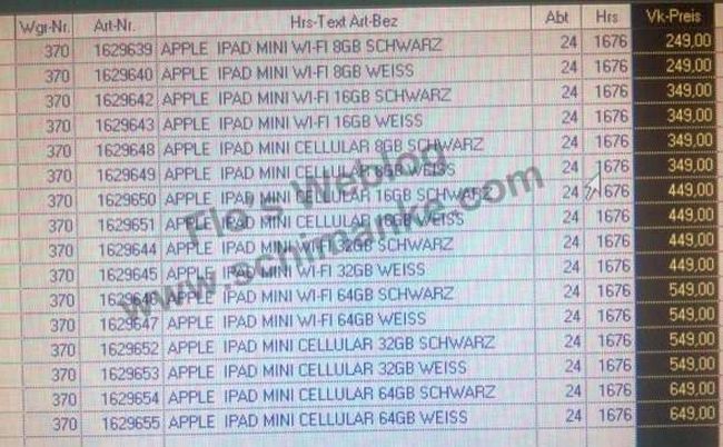 Bár hivatalosan még nem is mutatta be az Apple az iPad mini nettáblát, már az árakat is tudni lehet.
