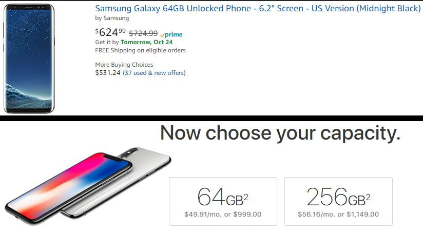 - Végül, de nem utolsósorban nagy vízválasztó lehet a döntésnél az ár, hiszen míg a Galaxy S8 már kifejezetten barátságos áron is megvásárolható, addig az iPhone X több mint ennek a duplájába is kerül megjelenéskor.