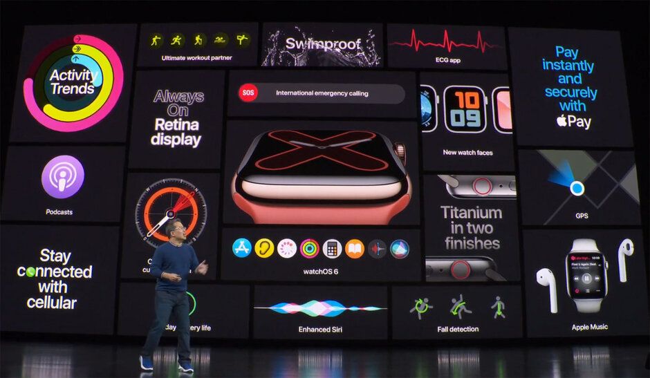 Az Apple Watch Series 5 a Series 4-et váltja fel, az árak 399 dollártól indulnak a GPS-es modell esetén, míg 499 dollárt kóstál a GPS+mobilnetes verzióban, a titánért viszont méretes felárat kell fizetni, 799 dollártól kezdődik, a kerámia pedig 1299 dollárt kóstál, igazi luxus. A cég továbbra is értékesíti a Series 3-at, az árát azonban 199 dollárra csökkentette.