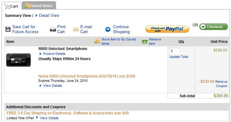 Az eredeti 599 dolláros ár helyett mindössze 370 dollárért hazavihetõ a Nokia N900 Rover - a LL17PBSTFKZ440 kupon kóddal -, ez átszámítva alig 100 ezer forintot jelent. Hazánkban ettõl jóval többet kell fizetni egy olyan példányért, amely valóban teljesen új és két év gyártói garancia is jár hozzá.