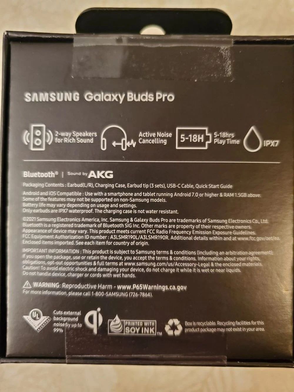 Ami érdekes még, az a készülék doboza, végre nem fehér, így nem lehet összetéveszteni az Apple termékeivel, valamint a hátulján található információ megerősít pár korábbi pletykát, mint a kétutas hangszórórendszert, a továbbfejlesztett IPX7 besorolást, az ANC-t, és az akkumulátort, amely akár 18 óra lejátszást is képes biztosítani egyetlen feltöltéssel. A Galaxy Buds Pro január 14-én mutatkozik be, ára 200 dollár lesz.