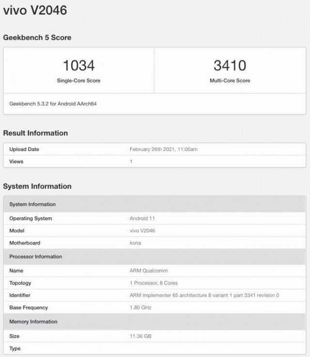 A globális piacra érkező vivo X60 Pro a Geekbench oldalán 1034 és 3410 pontot zsebelt be. A lista szintén megerősítette a Snapdragon 870 chipsetet 12 GB RAM-mal, illetve, hogy az Android 11 alapú OriginOS rendszert fogja futtatni.