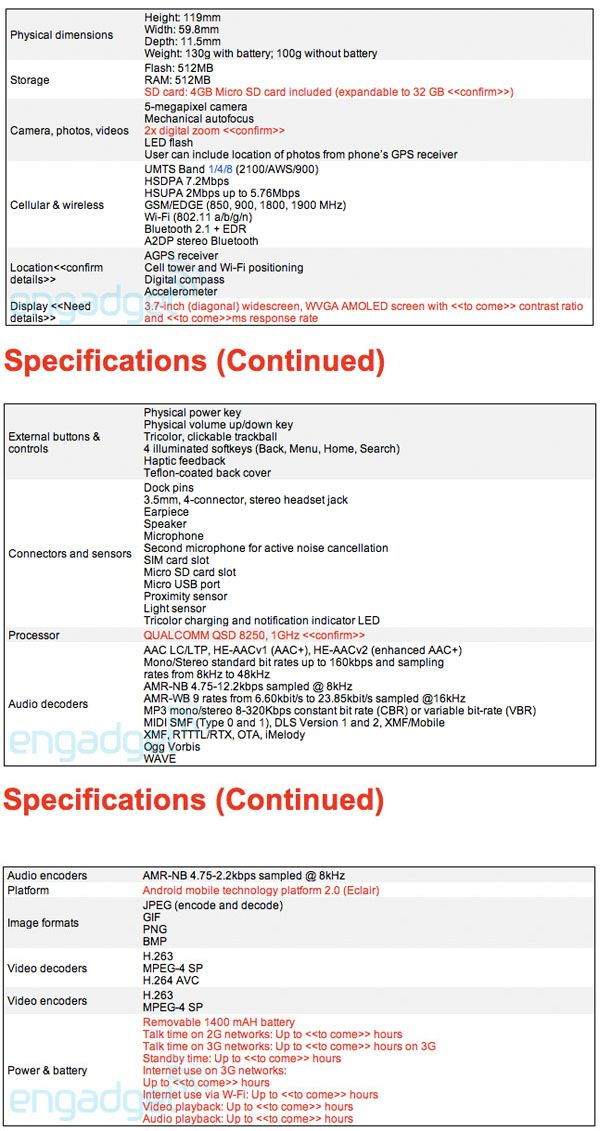Megjelent a HTC által készített Google Nexus One mobiltelefon teljes tudáslistája az interneten