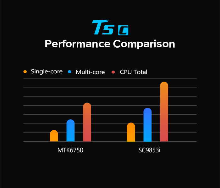 A kínai készülék kiváló teljesítményt nyújt a Mali-T820 grafikus processzorral, a 3 gigabájt RAM-mal együtt, így az erősebb játékok sem akasztják meg a T5c-t. A 32 gigabájt tárhelynek és a további 32 gigabájtos microSD kártyának köszönhetően egy jó darabig nem lesz tároló problémája a felhasználónak, van helye az alkalmazásoknak, a zenéknek és a videóknak is.