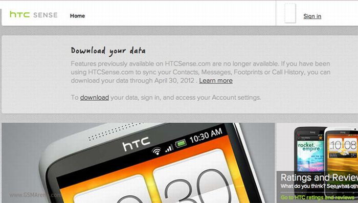 A tajvani gyártó komoly átalakítást tervez a HTCSense.com oldallal kapcsolatban, így minden felhasználó figyelmét felhívják, hogy mentse le az ott tárolt adatait, mivel azok törlésre kerülnek. A HTC április 30-án leállítja a kifejezetten csak HTC mobilokról elérhető online tárhely-szolgáltatást, hogy valami új megoldással rukkoljon elő. Az oldalon minden fontos információ tárolható volt, így például a teljes telefonkönyv, az üzenetek, a Footprints, a hívásnapló, stb. A HTC renoválásról ír a kiküldött e-mailben, azonban mégis úgy tűnik, valami nagyobb kaliberű módosítást terveznek, hiszen egy egyszerű kezelőfelület-módosítás vagy szolgáltatás-hozzáadás nem járna az adatok törlésével. Valamint az is elképzelhető, hogy köze van a legújabb HTC Sense kezelőfelülethez, amely nagyban eltér az előtte évek alatt megszokottól.