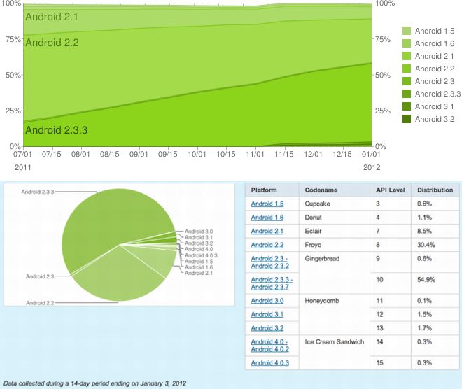 Egyre több készülékre érhetõ el a friss rendszer, az Android 4.0 Ice Cream Sandwich. Egy friss felmérés szerint a decemberben bemutatott ICS – november óta kapható egyébként a Galaxy Nexus, amelyen szintén ez a platform fut elsõként a világon – immár az összes androidos modell 0.6 százalékán érhetõ el. Ez persze nem azt jelenti, hogy mindenkinek Galaxy Nexusa van vagy Samsung i9100 Galaxy S II-je – hiszen már erre a telefonra is elérhetõ pár napja az elsõ ICS változat – mindössze arról van szó, hogy számos egyéb, régebbi telefonra is folyamatosan dolgoznak a ROM portoláson. Jelenleg is az Android 2.3 Gingerbread változat a legnépszerûbb, ezt a készülékek 55 százalékán használják, ezzel egyidõben pedig az elõtte piacon lévõ Froyo már csak 30.4 százalékot ért el.