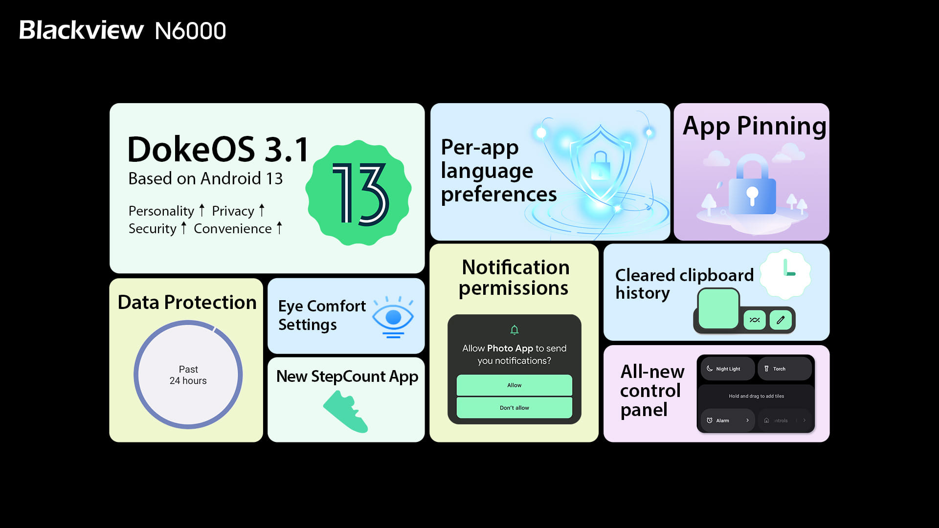 Eközben a legújabb DokeOS 3.1-et is bemutatta a gyártó, amely Android 13-on alapul. Olyan új funkciókkal rendelkezik, mint például az értesítési engedélyek és a törölt vágólapelőzmények, így teljes körű adatvédelmet biztosít a felhasználók számára.