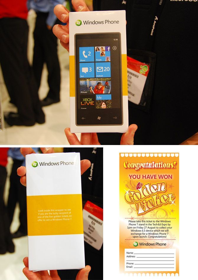 A szórakoztató kvízt is rejtõ 250 tábla csokiból 5-ben nemcsak finom édesség található, hanem egy olyan jegy, amely két ingyen mobilra jogosít. A Windows Mobile 6.5 rendszerû készüléket a helyszínen is átvehetik a szerencsések, míg a Windows Phone 7 OS-sel felszereltet akkor kapják meg, amikor hivatalosan is megjelenik a platform.