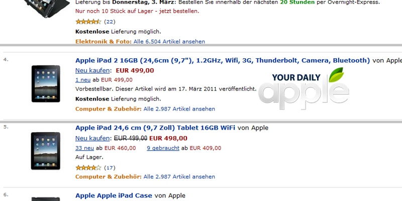 Bár a hivatalos bemutató helyi idő szerint csak ma este hatkor kezdődik, az Amazon oldalán már ott díszeleg az ár és némi információ is az Apple iPad 2-ről.