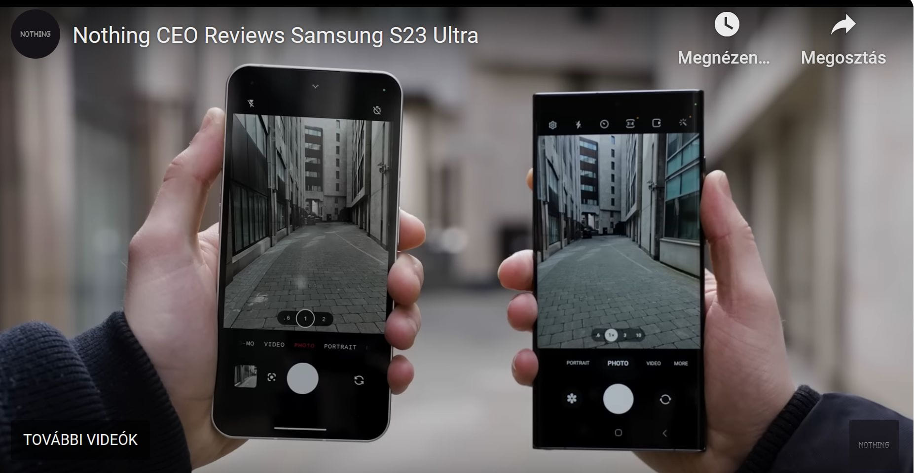 A Nothing vezérigazgatója, Carl Pei a YouTube-ra tette fel a Samsung Galaxy S23 Ultra értékelését, ahogyan azt korábban a OnePlus 11 és az iPhone 14 Pro esetében is tette. Értékelésében megosztotta gondolatait a Samsung legújabb zászlóshajó okostelefonjának dizájnjáról, szoftveréről és áráról, valamint összehasonlította azt saját cége Nothing Phone (1) készülékének ugyanezekkel a tulajdonságaival.