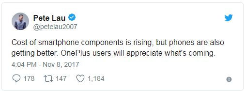 Hét elején írtuk, hogy drágább lesz picit a OnePlus 5 utódja, aztán a tegnap esti információk szerint pontosan ugyanannyiba kerül majd, mint elődje, a jelenlegi legújabb és egyben sajnos leghihetőbb hír szerint viszont jóval drágább lesz a OnePlus 5T. A forrás miatt jelenthetjük ki, hogy tényleg jelentős áremelés várható, ugyanis maga Pete Lau, az egyik alapító írta ki Twitterre az alábbiakat: