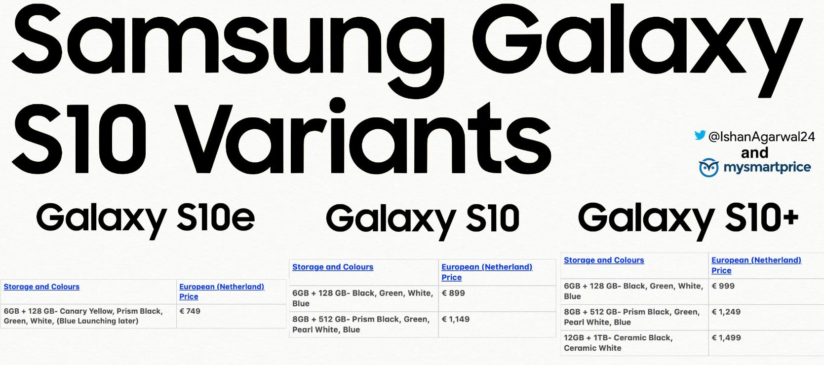A Samsung Galaxy S10+ lesz a cég életében az első okostelefon, amely akár 12 gigabájt RAM-mal és 1 TB belső tárhellyel is felszerelve is választható. A tavalyi évvel ellentétben idén már három taggal bővül a kínálat, érkezik a Samsung Galaxy S10 E, a Samsung Galaxy S10 és a Samsung Galaxy S10+. IshanAgarwal24 Twitter felhasználónak köszönhetjük az árakat, amelyeket több oldal is hitelesnek ítélt.