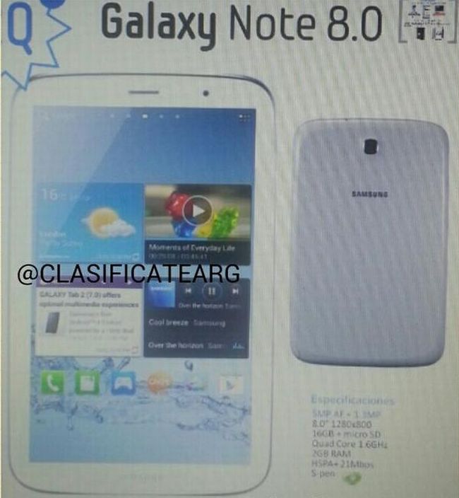 A Samsung elnöke, J.K Shin is megerősítette a Samsung Galaxy Note 8.0 táblagép érkezését. A februári Mobile World Congressen debütál az újdonság, amely 8 colos, 1280×720p felbontású Super Clear LCD megjelenítővel, Android 4.2 Jelly Bean rendszerrel debütál. A 7.95 mm vékony burkolatba rejtett tudást jelenti még egy 5 és egy 1.3 megapixeles kamera, egy négymagos, 1.6 gigahertzes CPU, 2 gigabájt RAM, 16 vagy 32 gigabájt beépített tárhely és microSD bővíthetőség (ez utóbbiból maximum 32 gigabájtig kezeli a bővítőkártyákat). Adott még a Bluetooth 4.0, az USB 2.0, a Wi-Fi 802.11 a/b/g/n, GPS és egy 4600 mAh-s akkumulátor. A jelenleg KONA fejlesztési néven ismert modell Samsung GT-N5100 és Samsung GT-N5110 neveken lesznek hivatalosak.