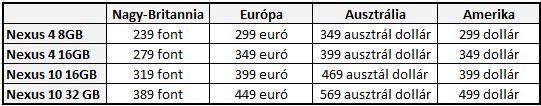 A Google Play oldalán mától lehet megvásárolni a Google Nexus 4 mobilt és a Google Nexus 10 táblagépet. Ahogy az várható volt, a készülékek Amerikában lényegesen olcsóbbak mint Európában. Ezúttal nem csak egyszerűen a dollár helyett eurót írtak a számok után, hanem még egyébként is drágábbak lettek az öreg kontinensen megrendelt modellek. Ennek ellenére még mindig elmondható, hogy ár-érték arányban mind a telefon, mind a táblagép rendkívül megéri. A Nexus 4-hez máris megjelent a gyári élvédő bumper, amely 20 dollárba kerül.
