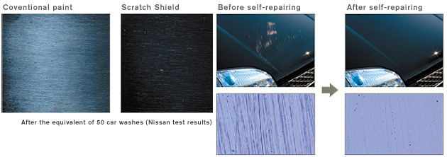 A karcokat saját maga eltüntetõ festéket a Tokiói Egyetemmel és az Advanced Softmaterials céggel együtt fejlesztette a Nissan Motor, a különleges fényezés 2005 decemberében debütált.