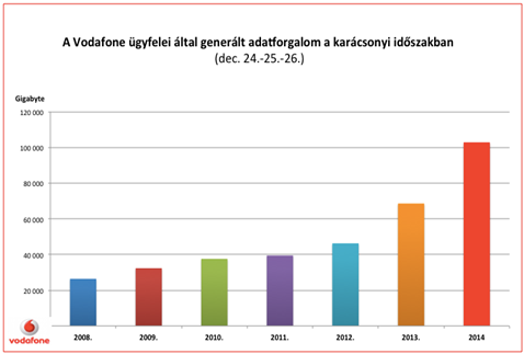 2014. december 24. és 26. között az okostelefonok és táblagépek segítségével elküldött sok millió különbözõ internetes üzenet mellett nagyon sokan a hagyományos módon üdvözölték ismerõseiket, rokonaikat, barátaikat, így közel 72 ezer MMS-t, és 7 millió SMS-t küldtek, valamint 9,3 millió hívást indítottak. Az egy évvel korábbihoz képest az SMS-ek száma 3 százalékkal csökkent, az elküldött MMS üzenetekben azonban 1 százalék, a hanghívások esetében pedig több mint 8 százalékos növekedés tapasztalható, vélhetõen az egyre népszerûbb, a korlátlan hívásokat lehetõvé tevõ csomagoknak köszönhetõen. A mobilinternet-forgalom ugyanebben az idõszakban 50%-kal haladta meg az egy évvel korábbit. Az adatforgalom kiugró növekedése és ezzel egyidejûleg az elküldött sms-ek számának csökkenése egyértelmûen megmutatja, hogy a pár éve még egyeduralkodó szöveges üzenetekbe foglalt jókívánságok helyét ünnepek idején is mindinkább átveszi az online és social média felületeken zajló kommunikáció.