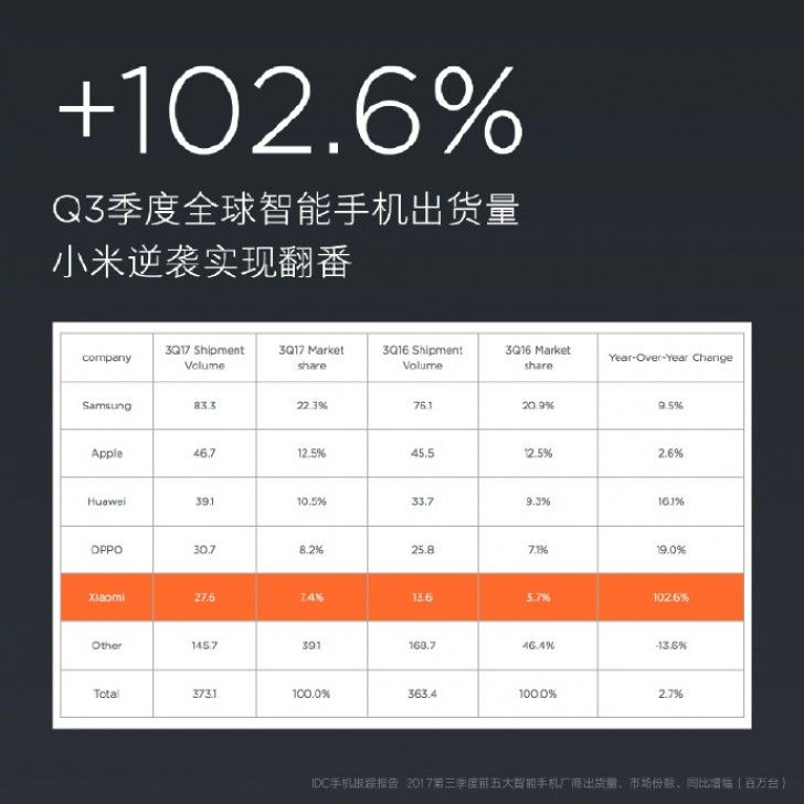 A kedvenc kínai gyártónk ma tartott sajtótájékoztatót, ahol bejelentette a Xiaomi Redmi 5 és a Xiaomi Redmi 5 Plus modelleket, emellett az is kiderült, hogy mindössze három hónap alatt 27.6 millió okostelefont szállítottak le, ez pedig több mint száz százalékos növekedést jelent az előző év ugyanezen negyedévéhez képest. A piaci részesedés megduplázódott, 3.7 százalékról 7.4 százalékra nőtt, így már a TOP 5-ben is benne van a világ tizennégy piacán.