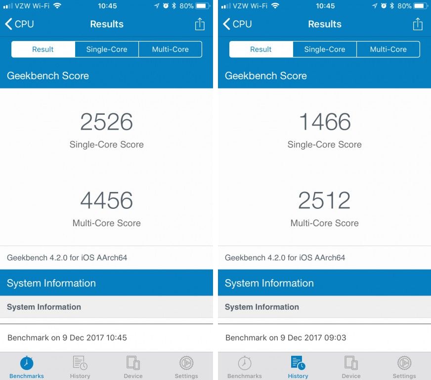 Most hétvégén a 9to5Mac-nek feltűnt egy új fórumtéma a Redditen, amely érdekes betekintést nyer a régi ügybe. Az Apple által anno kiadott frissítés nem tett mást, mint a processzor maximális órajelét dinamikusan megváltoztatta, praktikusan lefelé attól függően, hogy milyen feszültség tapasztalható az akkumulátoron, így akadályozta meg szoftveresen a gyártó a telefon túl nagy áramfelvételét, majd azt ezt követő kikapcsolást. Akik tehát nem kaptak garanciában új akkumulátort, a telefonjaik egyre lassabban és lassabban működtek, hiszen a telep használódott. Ezt egyszerűen le lehet mérni akár egy GeekBench teszten is, a régi akkumulátorral 829/1377 pontot ért el egy felhasználó, míg csere után 1471/2476 pontot, szabad szemmel is igen jól észrevehető a drasztikus változás.