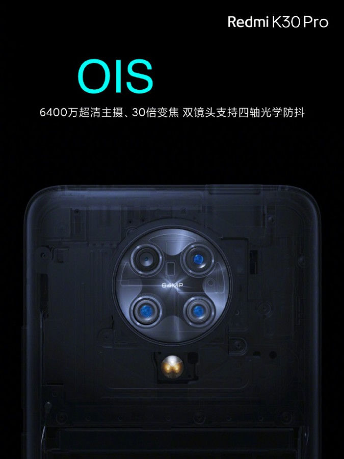 A hátlapon a Redmi K30 Pro fő kamerája a 64 megapixeles Sony IMX686 szenzor optikai képstabilizátorral, ezt követi a 13 megapixeles ultraszéles, az 5 megapixeles makro és a 2 megapixeles mélységszenzor. Annak, akinek szükséges van teleobjektívre, válassza a Zoom verziót, abban ugyanis az 5 megapixeles makro helyett 8 megapixel felbontású tele jár optikai képstabilizátorral, 3x optikai és 30x hibrid zoommal. Mindkét K30 Pro 8K videók rögzítésére képes.