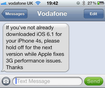 Hétfõ este derült ki a brit Vodafone felhasználói számára, hogy az iOS 6.1 frissítés komoly bajt okozhat.
